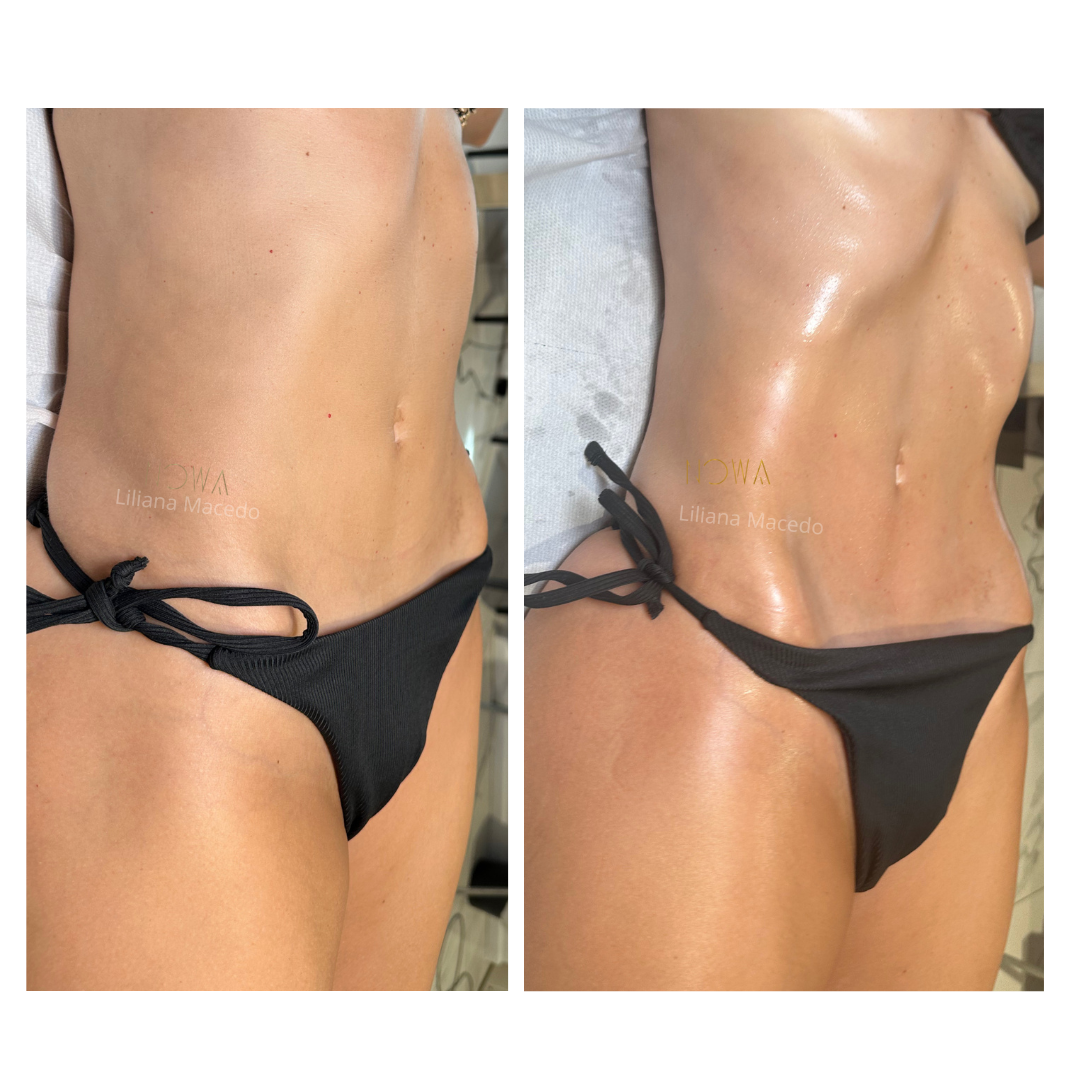 Pele flácida, pneuzinhos, estrias, tudo começará a voltar à forma pois haverá uma síntese maior de colágeno e elastina.