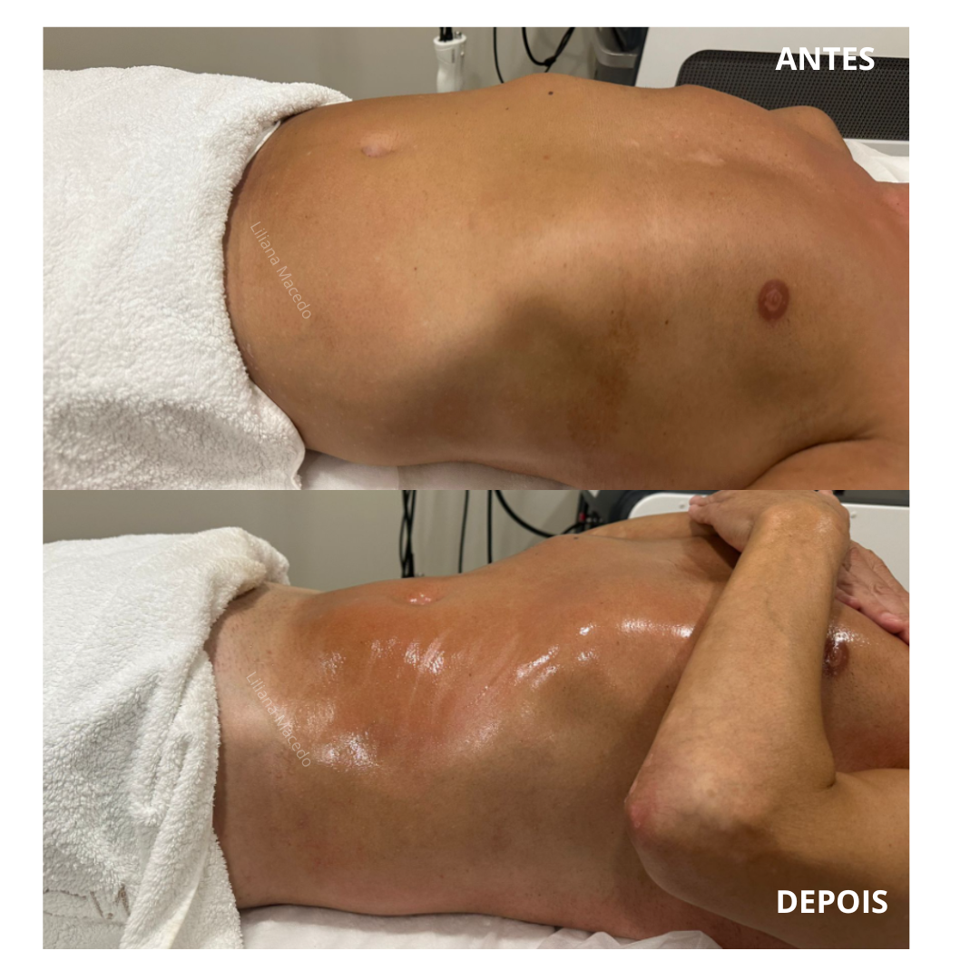 Uma única sessão promove a produção de nova linfa eliminando a antiga e através de manobras especiais e atuará nos depósitos de gordura remodelando a silhueta